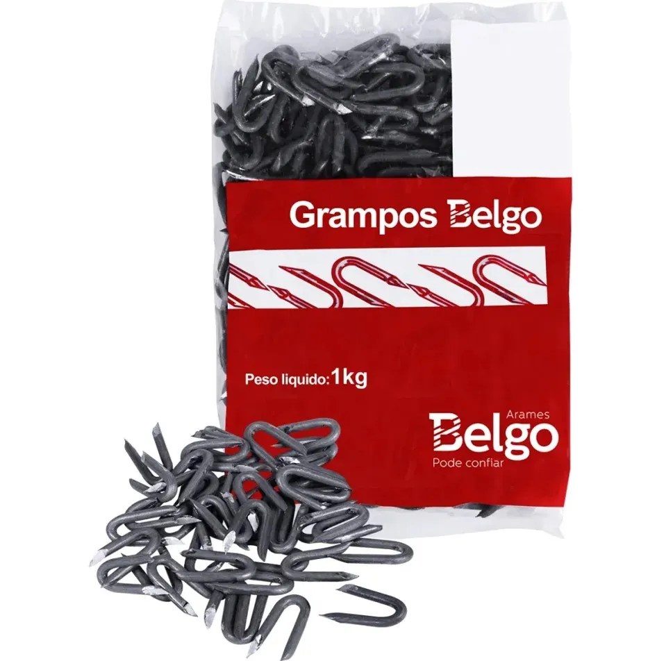 Fixação prática e resistente para arames em mourões e palanques de madeira, com proteção anticorrosiva.